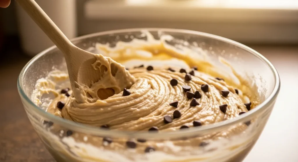 - Fold in dry ingredients gently.
