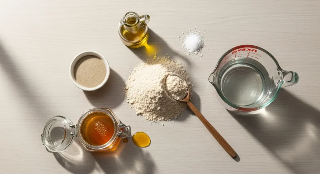 • Honey or sugar: Feeds yeast + softens crumb